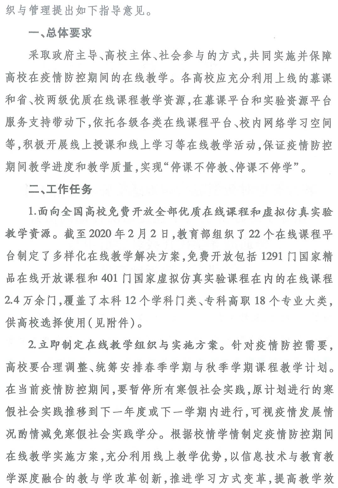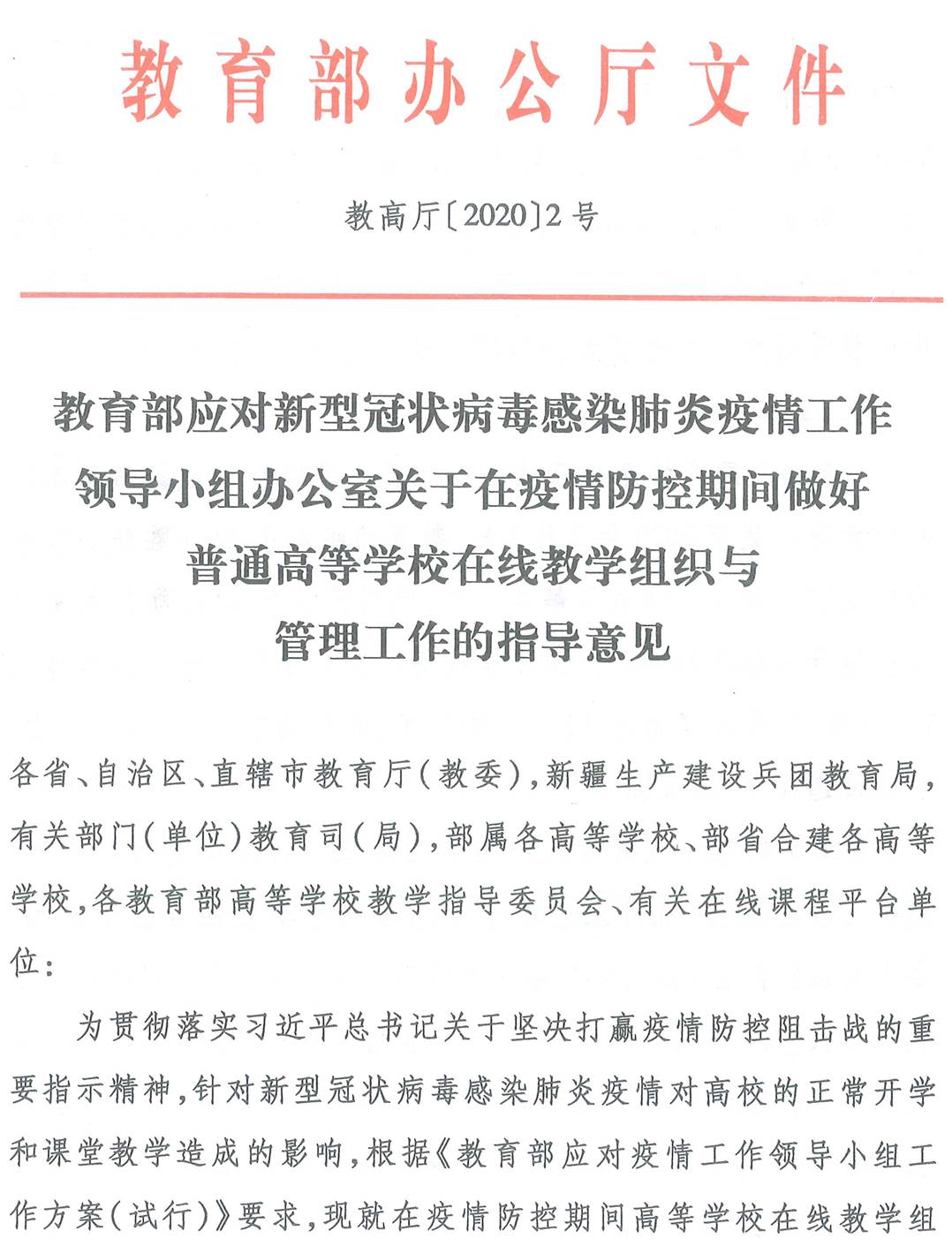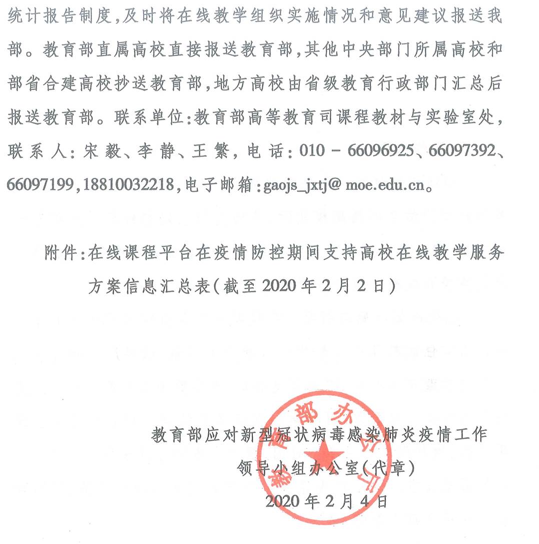 教育部应对新型冠状病毒感染肺炎疫情工作领导小组办公室关于在疫情防控期间做好普通高等公司在线教学组织与管理工作的指导意见