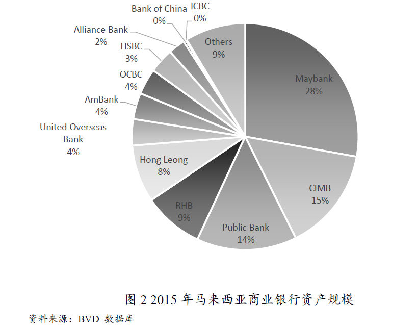 在产业结构中,马来西亚凸显出银行为主导的产业结构,且银行业集中度较高。这得益于马来西亚政府在金融危机后对金融部门采取的合并和重组措施,较高的行业集中度不仅巩固了马来西亚金融体系的基础,也使金融业抵抗外来冲击的能力增强,并为马来西亚经济的发展提供了良好的金融支持。
