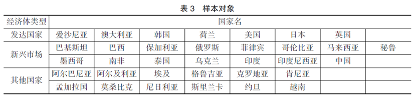本文按照四分位点分别将RSR和C值分为4档,将2000-2014年按照每5年1期分为3期,把国家按照经济发展状况分为3类。从RSR和C各档在时间上和国家上分布的一致情况和符合直觉的程度来判断两个评价指标的效果。其中,经济体类型的分类参考IMF的《世界经济展望2012》,使用的国家和分类如下表所示。