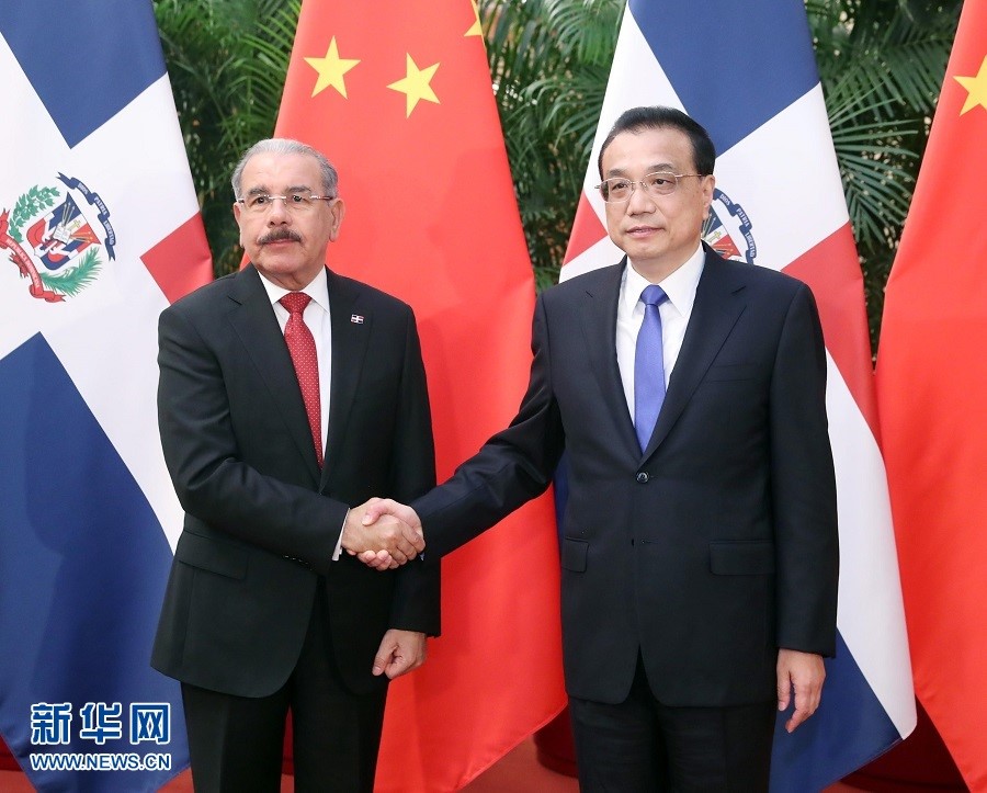李克强表示,今年5月,中多正式建交,这符合两国人民的根本利益,开启了两国关系新篇章。习近平主席同总统先生举行会谈,全面规划两国关系发展蓝图。坚持一个中国原则是中多建交的政治基础,中方愿同多方相向而行,推动中多关系持续稳定向前发展。