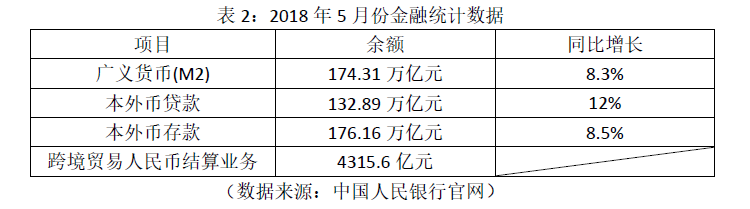 2. 2018年6月12日,中国人民银行发布了2018年5月份的金融统计数据,具体如表2所示。