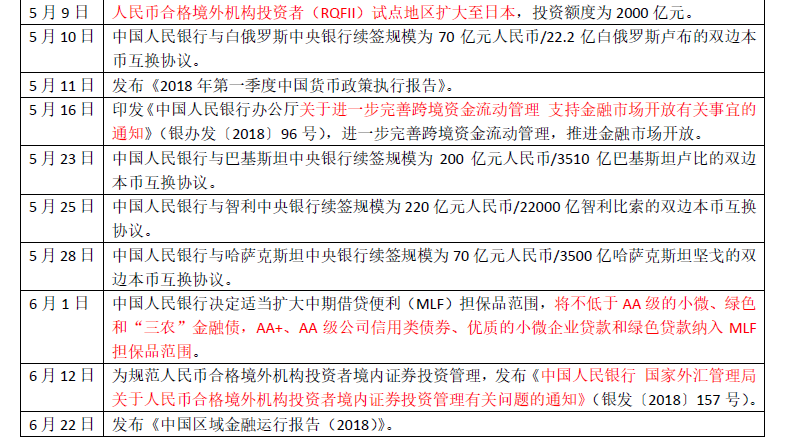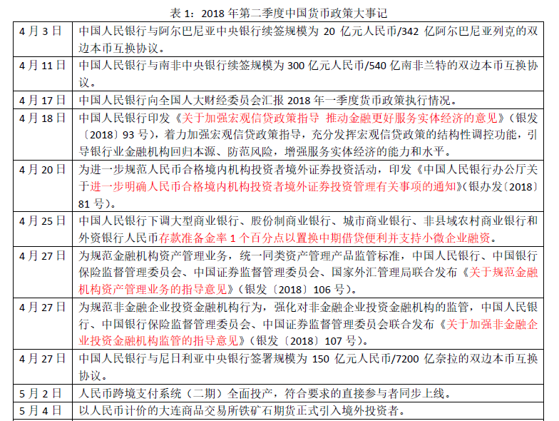 2. 2018年8月24日,人民银行发布了《2018年第二季度中国货币政策大事记》,本公众号将主要内容整理如表1所示。