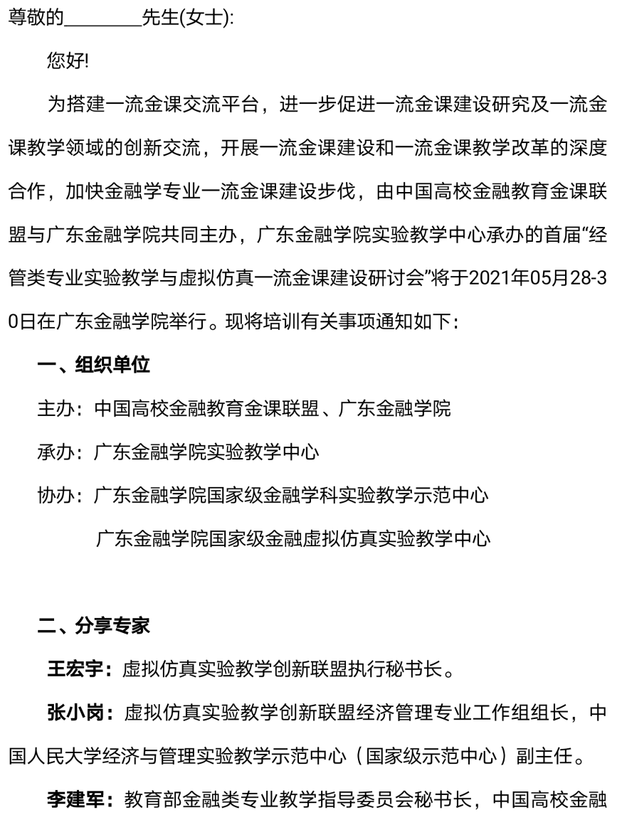 首届“经营类专业实验教学与虚拟仿真一流金课建设研讨会”邀请函