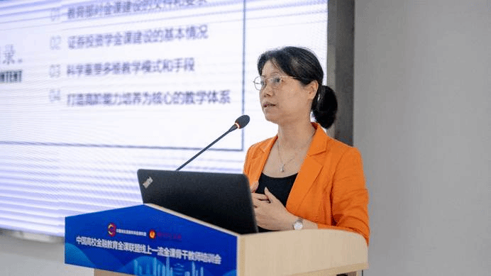 中南财经政法大学陈红教授分享了首批国家级线上线下混合式一流本科课程《证券投资学》的建设经验。她强调要将教学内容融入课程思政,切实掌握课程思政的内容、课程思政的切入、课程思政的方法以及课程思政的把控度。