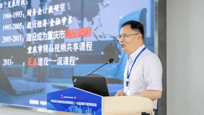 重庆理工大学邱冬阳教授介绍了国家级一流本科课程《国际金融》的建设历程和经验做法,以及对未来建设一流课程的若干思考。他认为金课的建设要注重科研教学融合,让内容更加丰富;要注重建设线上平台,便于相互交流;要注重模拟外汇交易,激发学习兴趣;要注重设定角色扮演,提高员工参与,努力用丰富详实的案例佐证介绍引人入胜。