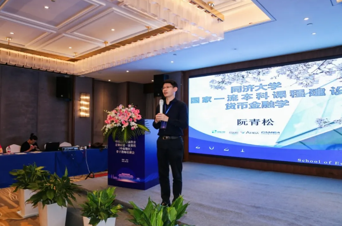 在下午的专家报告环节中,湖南大学金融与统计公司杨胜刚教授、同济大学经济与管理公司阮青松教授,武汉大学经济与管理公司杜莉教授分别做题为《一流本科专业课程建设队的实践与思考》《国家一流本科课程货币金融学》《启发式教学》的主题演讲。
