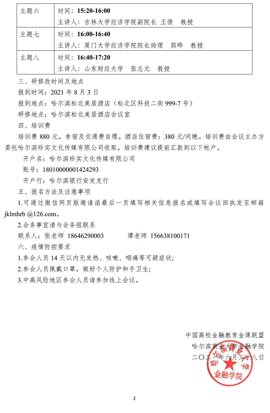 “中国高校金融教育金课联盟混合式金课(东北地区)骨干教师培训会” 邀请函