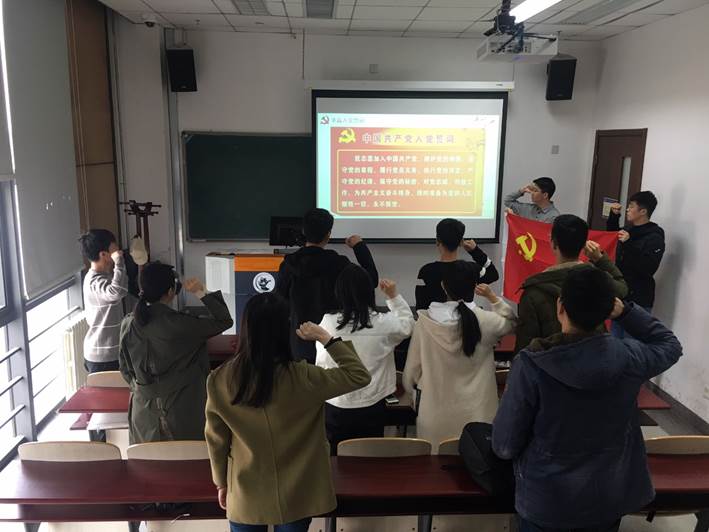 最后,支部书记张策带领大家重温入党誓词,会议结束。