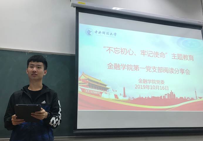 第一党支部预备党员刘子扬同志主持本次阅读分享会