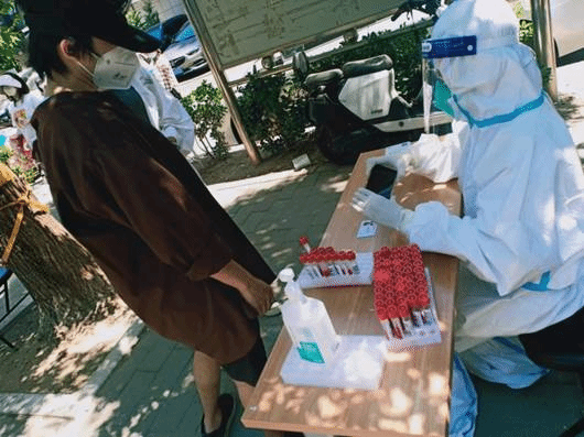 我们小区人比较多,小区做核酸的队伍,绕着小区从头连到尾,还要再拐弯,小区里五层矮楼10栋,18层高楼10栋,粗算一下,大约2000户人家6000人,头一天有100多人,已经排上队了,但是到点了就没做上,所以第二天大家一大早7:00就去排队了,队伍得有一公里长。每天8:00~14:00做核酸,6个小时,每小时要做1000人,昨天增加到四个窗口,那就意味着说,医护人员不吃不喝得每分钟4个人才能完成。特殊时刻,医护和防疫人员太辛苦啦!感谢你们!