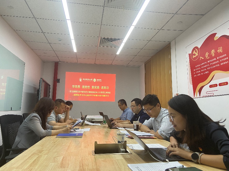 公司党委委员、副经理苟琴结合“习近平总书记关于发扬斗争精神、应对风险挑战、意识形态工作的重要论述”进行重点发言。她阐释了斗争精神的伟大作用,围绕如何发扬斗争精神,强调要增强斗争本领,应对风险挑战。她结合高校教书育人、科学研究的工作实际,提出要加强教师队伍师德师风建设,加强员工思想政治教育,坚守高校宣传工作中的意识形态阵地;要进一步加强中国自主知识体系建设,凝练传播中国特色社会主义理论,提升自主人才培养质量;要围绕我国经济建设中的重大挑战和风险,努力提供科研智慧,解决制约我国经济发展、影响金融安全的卡脖子问题,为实现中华民族伟大复兴做出更大贡献。